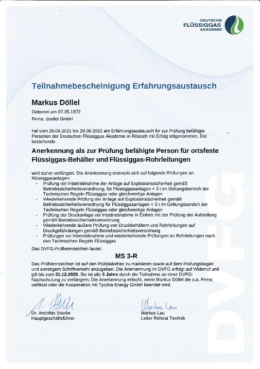 befähigte Person Flüssiggas