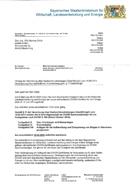 behördliche Anerkennung nach GasHdrLtV Gashochdruckleitungsverordung