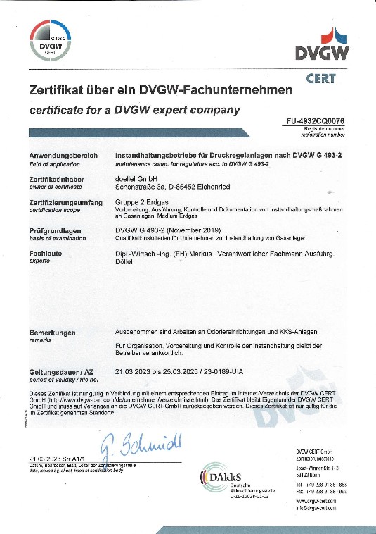 DVGW Zertifizierung nach G 493-2